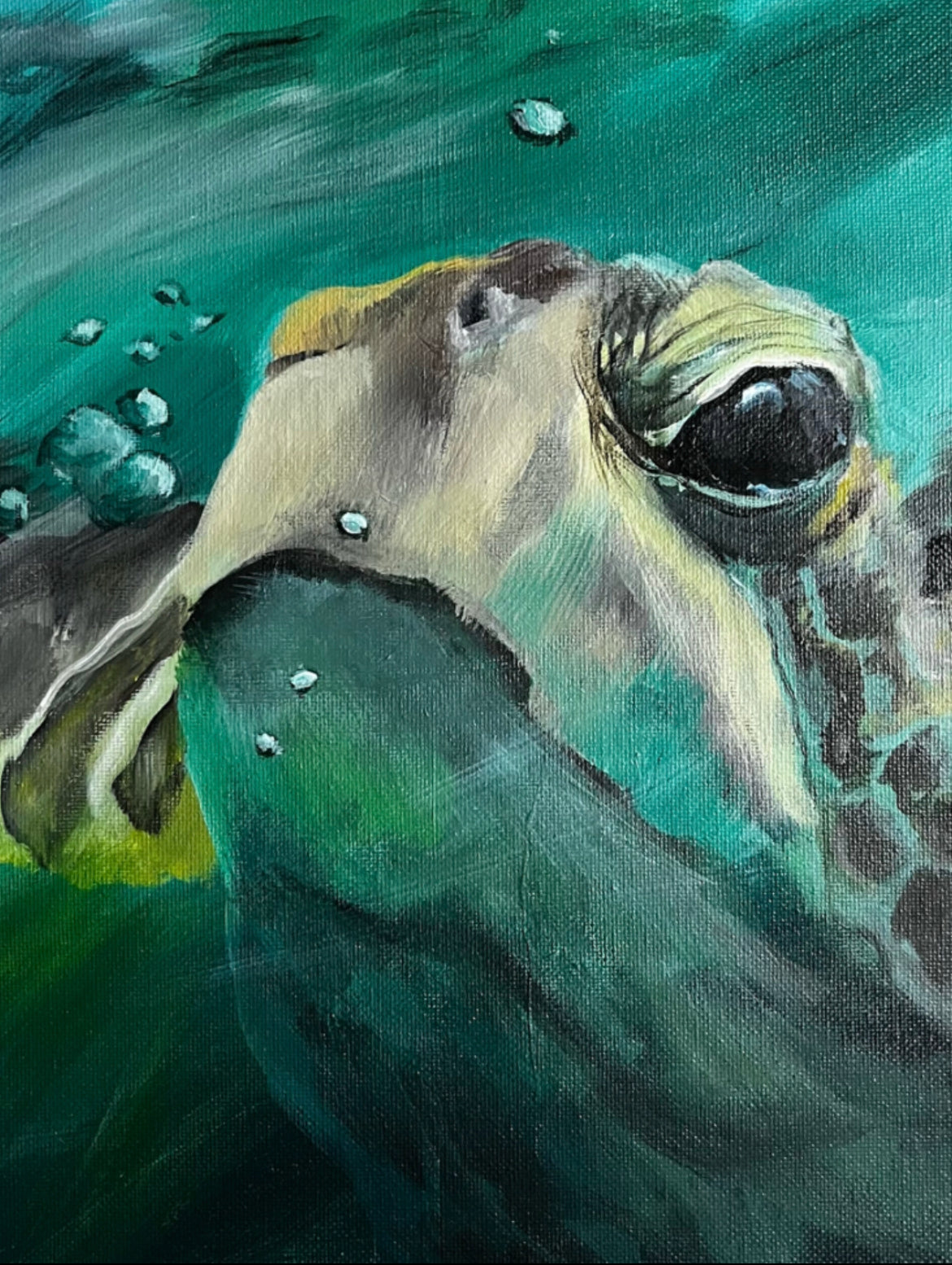 I dream of turtles and paint them. This is one of many. 12x12 acrylic on canvas