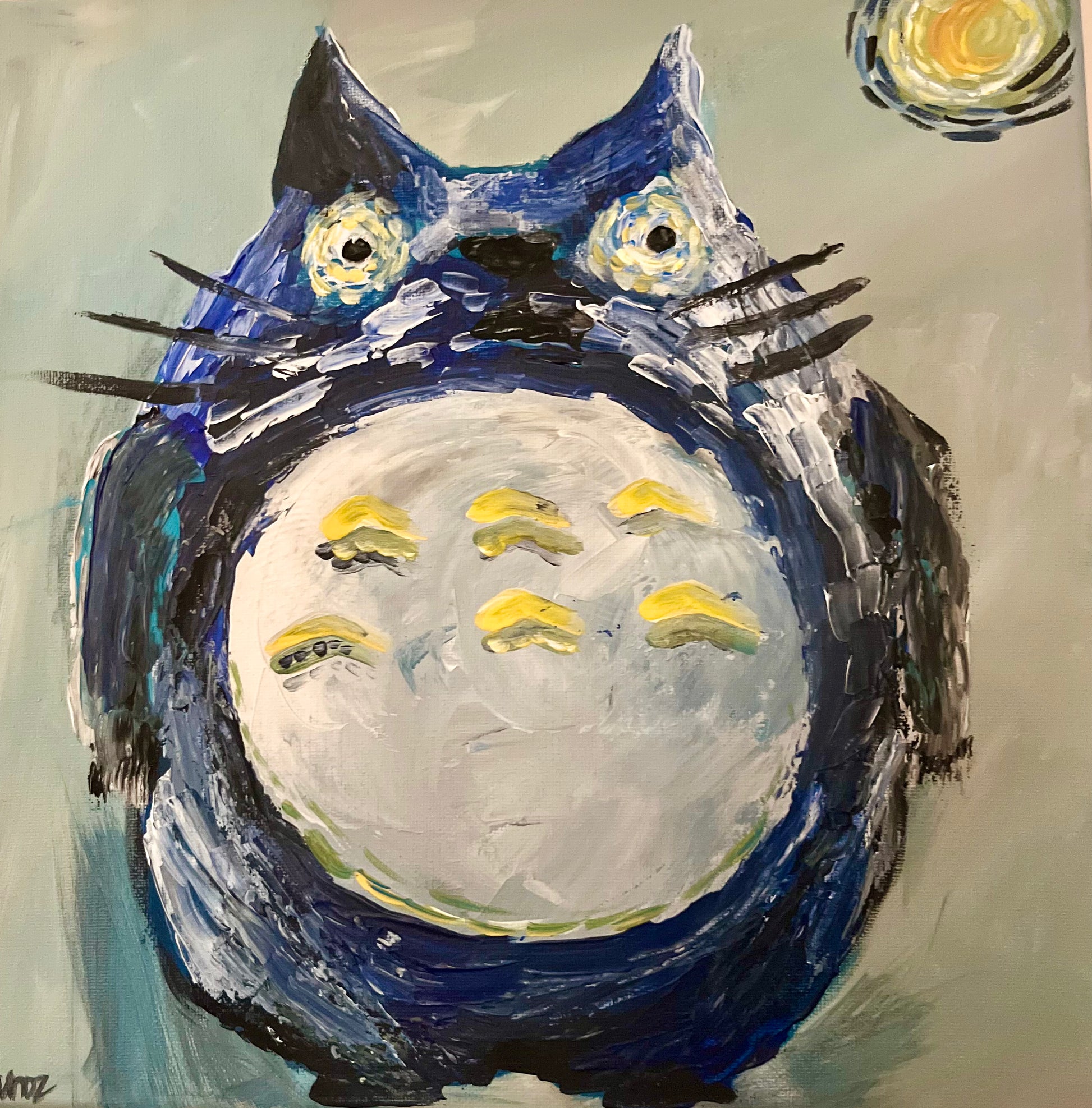Textured acrylic painting of Totoro. 11x11” canvas.